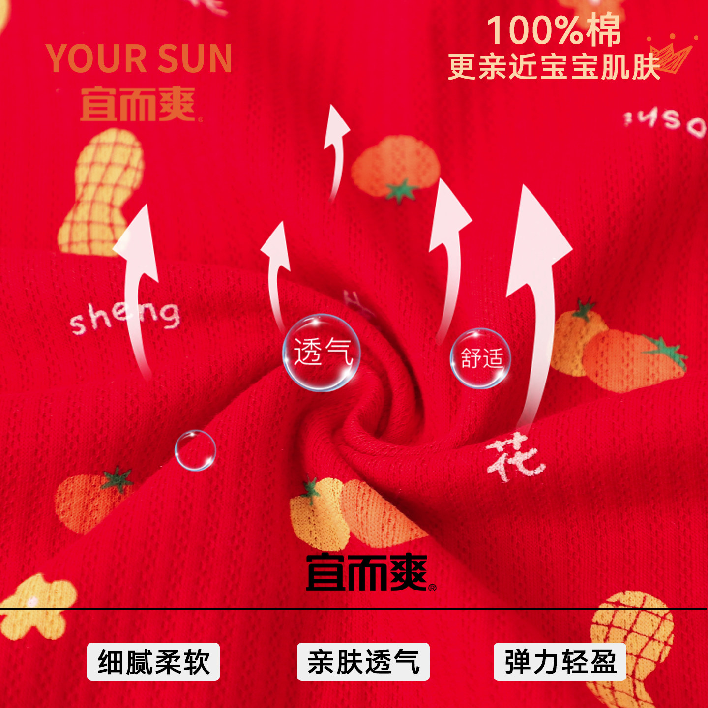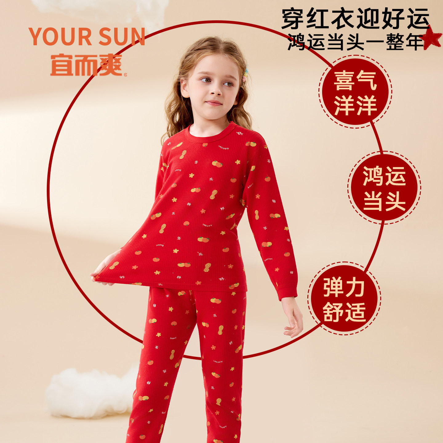 宜而爽儿童本命年秋衣秋裤套装12岁大红套男女童纯棉保暖内衣马年