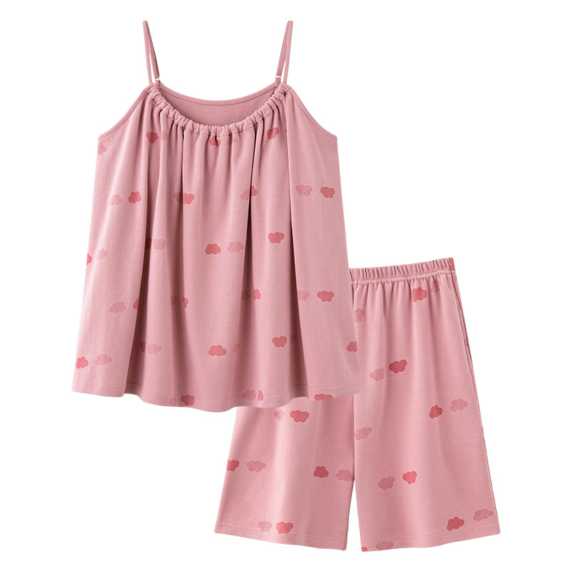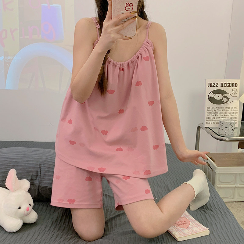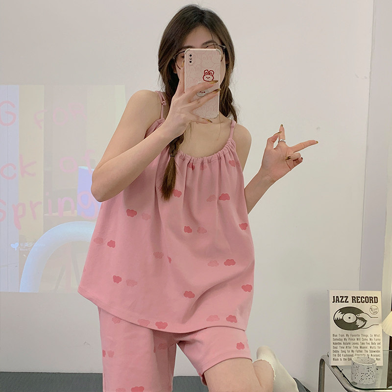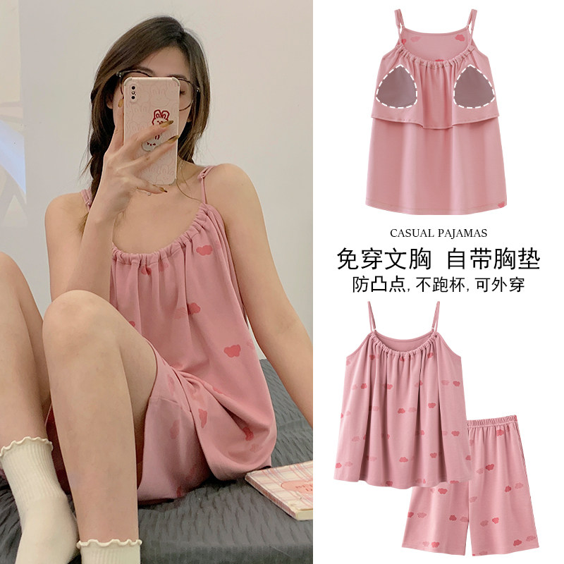 2025新款吊带睡衣女夏季纯棉带胸垫性感背心短裤大码甜美少女套装