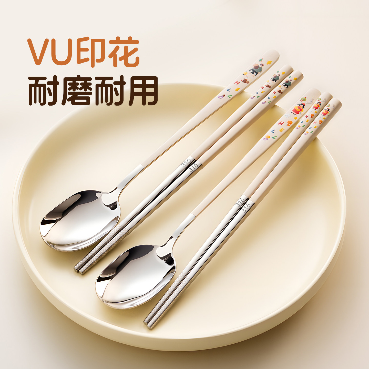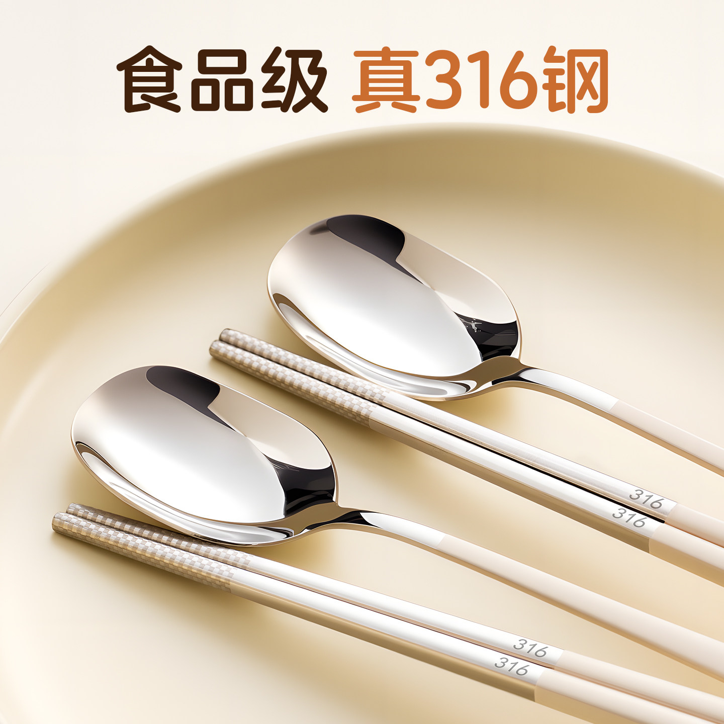 onlycook学生静音便携餐具316不锈钢筷子勺子套装儿童专用收纳盒