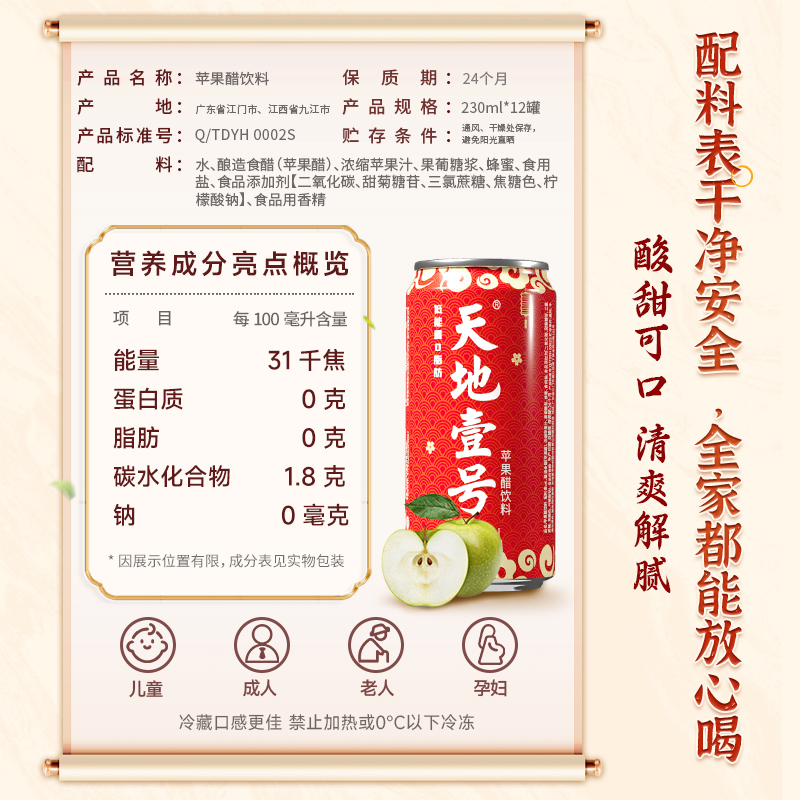 【礼盒装】天地壹号苹果醋饮料230ml*15罐整箱聚餐解腻解辣送礼