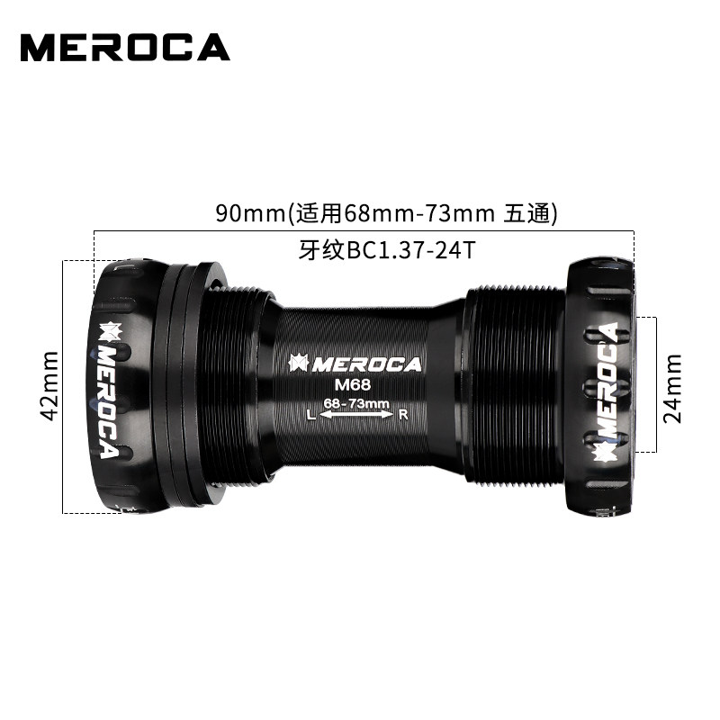 MEROCA彩色山地自行车7075一体中空BB中轴压入螺纹旋入式中轴