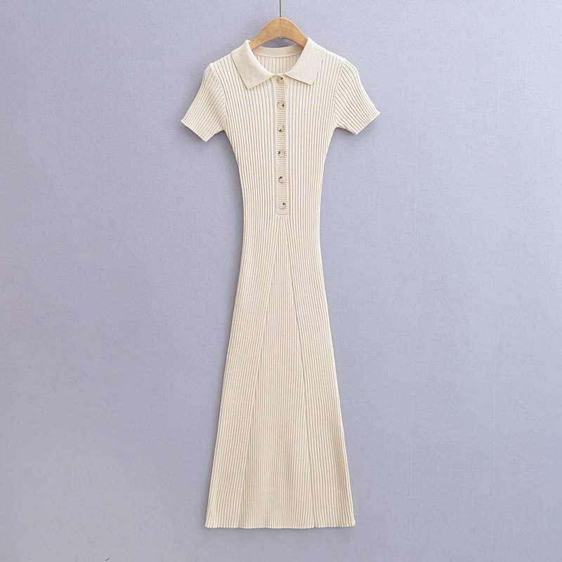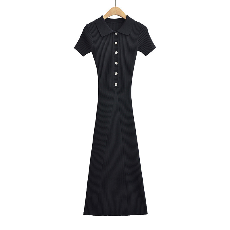纯欲Polo翻领短袖鱼尾连衣裙女2025夏季美式辣妹修身包臀针织长裙