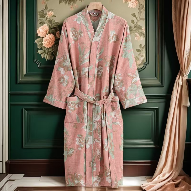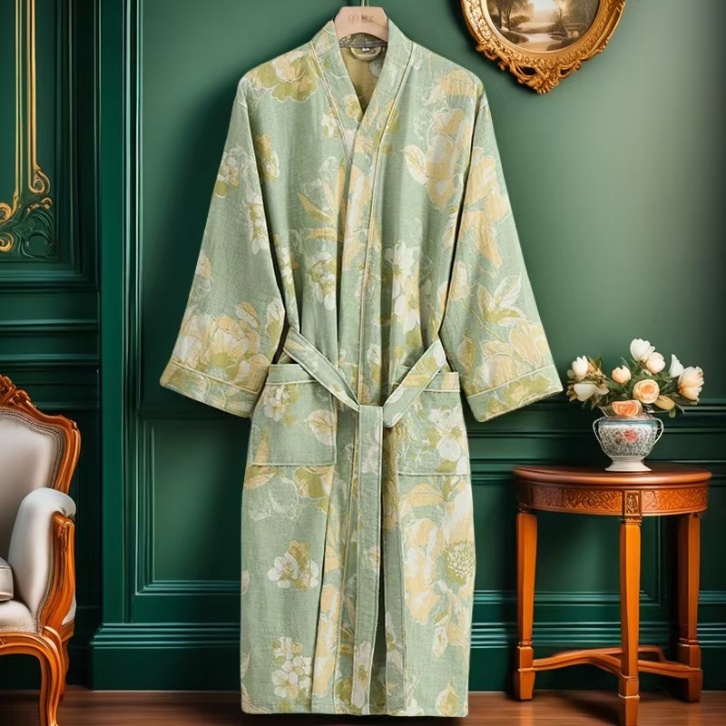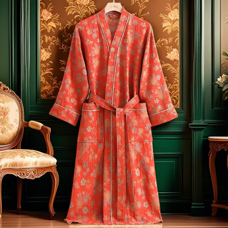 浴袍纯棉双层纱男女新款居家服吸水速干浴衣四季通用情侣款春夏季