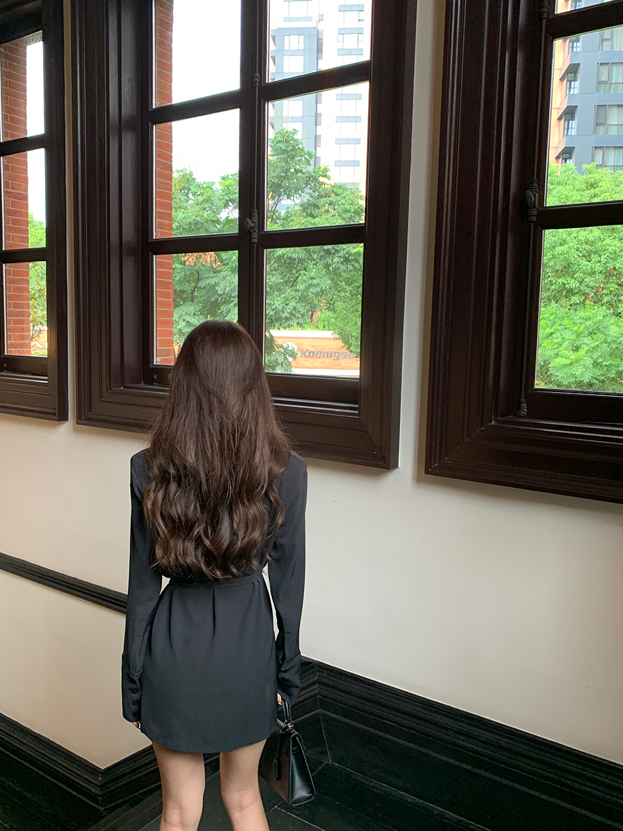 Norain不下雨 御姐风气质高级感西装连衣裙女春季系带长袖小黑裙