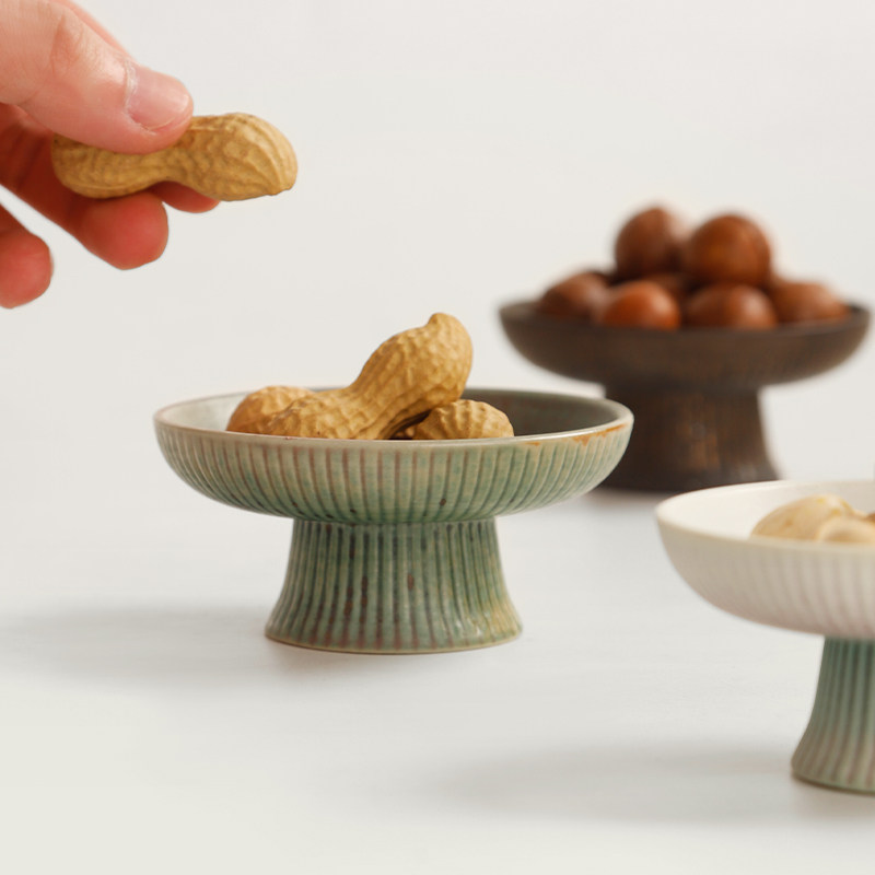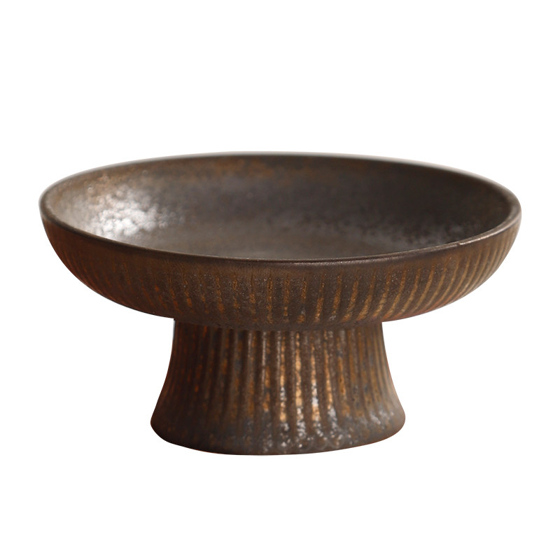 日式粗陶高脚水果盘中式茶点盘陶瓷佛手柑托盘干果禅意小点心碟子