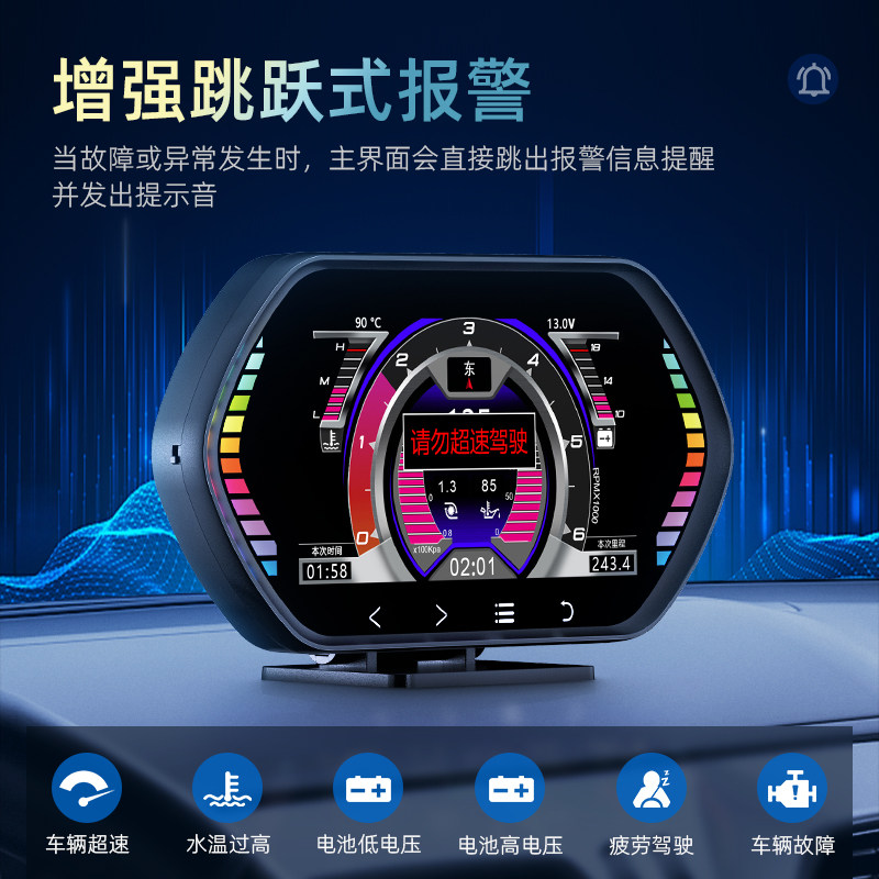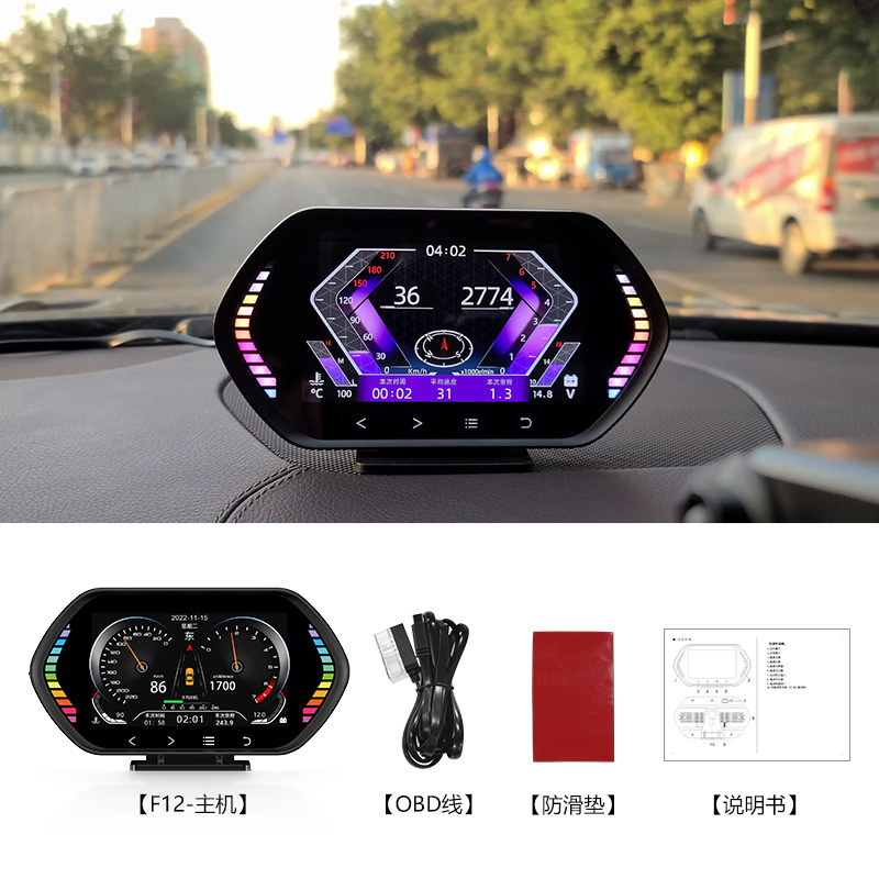 F12汽车OBD多功能显示器坡度仪油耗表涡轮压力故障码诊断检测仪