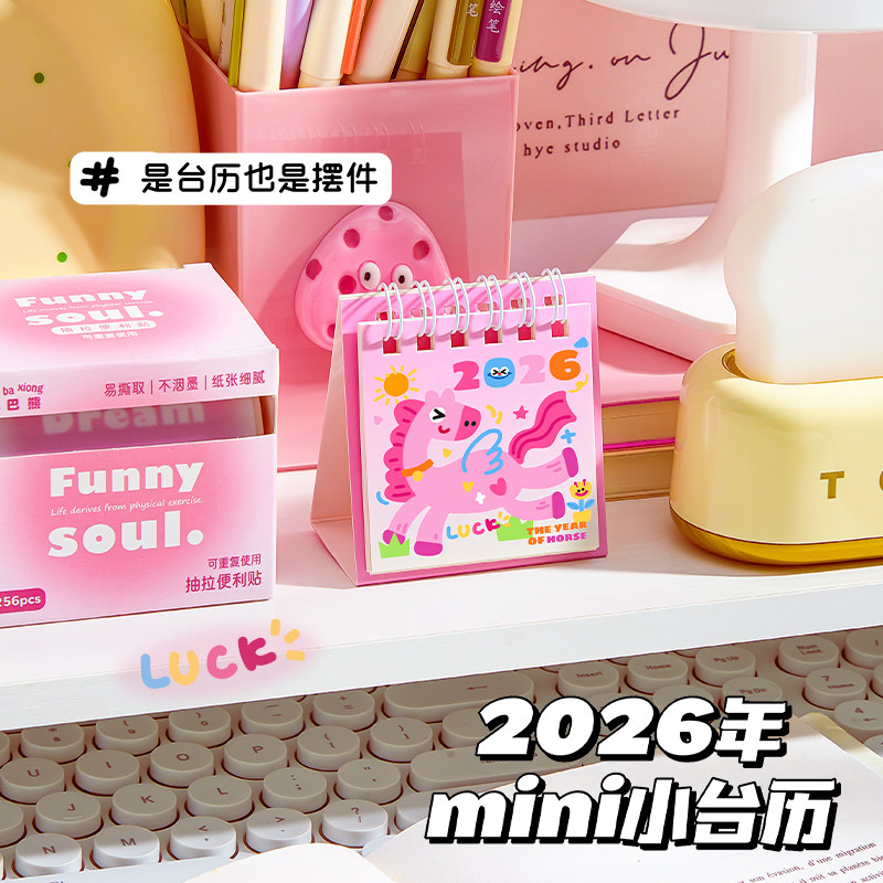 2026年迷你台历卡通可爱桌面摆件创意小日历学生中考高考倒计时提醒提示牌记事日程计划表办公室月历自律打卡