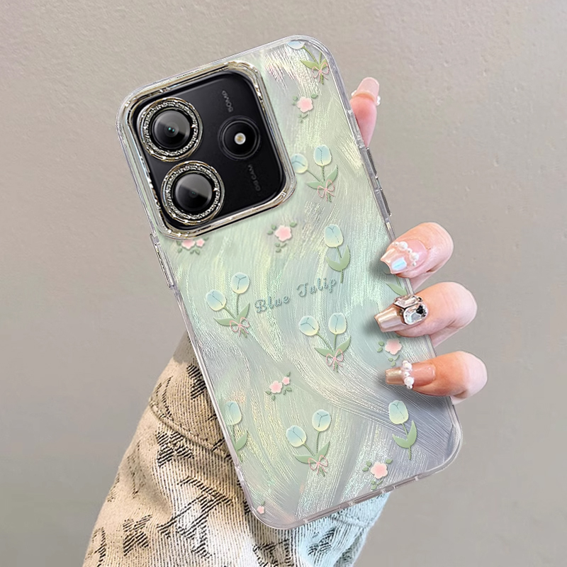 适用郁金香红米note14pro+手机壳13R专用12turbo羽纱11全包9防摔10保护套redmi新款高级女轻奢风极速版镜头膜