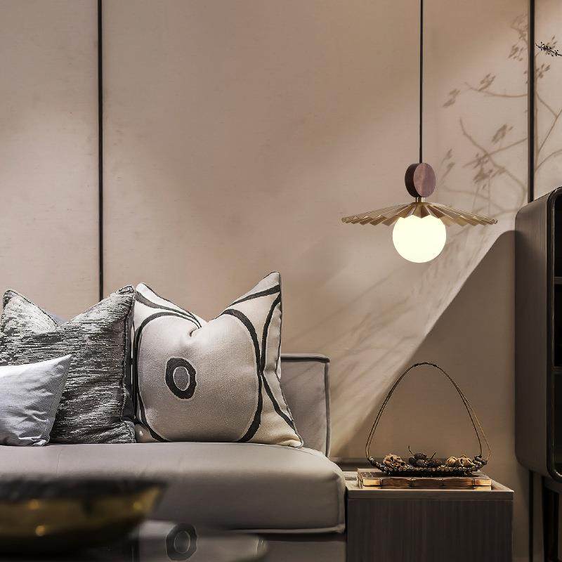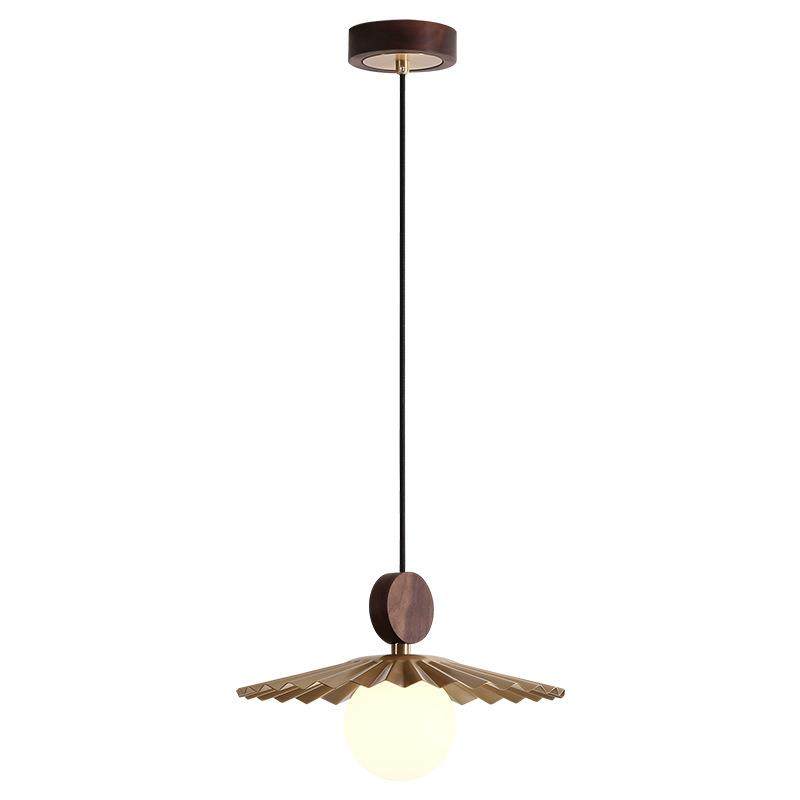 餐厅吊灯新中式胡桃木全铜三头饭厅吧台灯具极简轻奢卧室床头吊灯