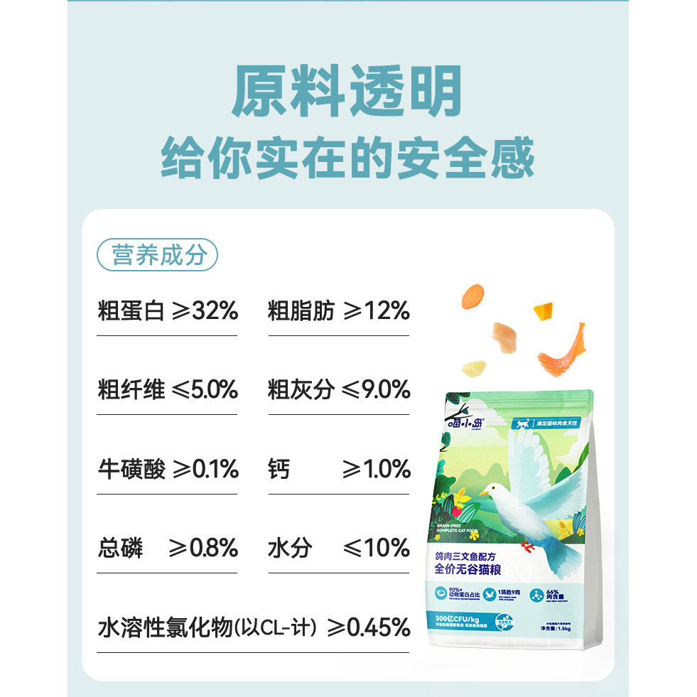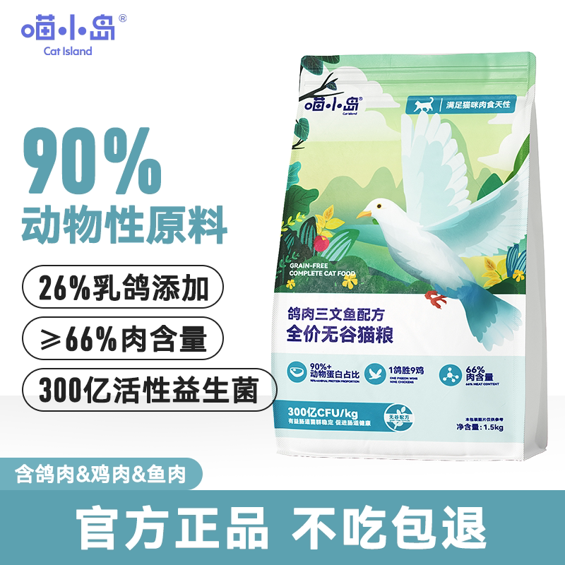 喵小岛肉鸽无谷猫粮鲜肉成猫幼猫通用型鸡肉三文鱼肉全价猫粮乳鸽