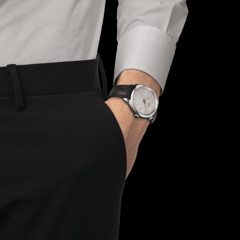 天梭PR100系列钢带轻奢休闲石英男表少女峰T150.410.11.041.02