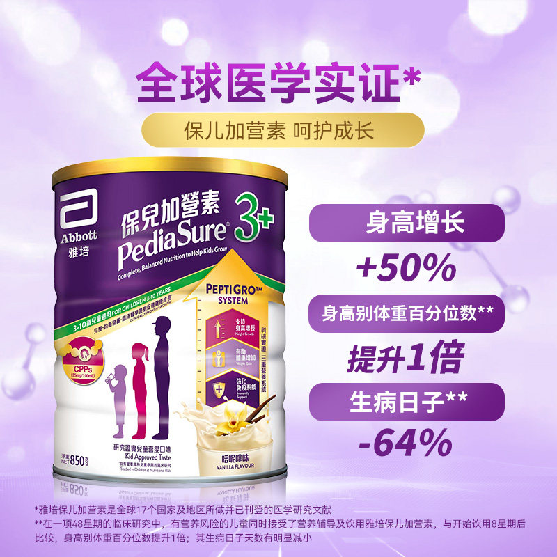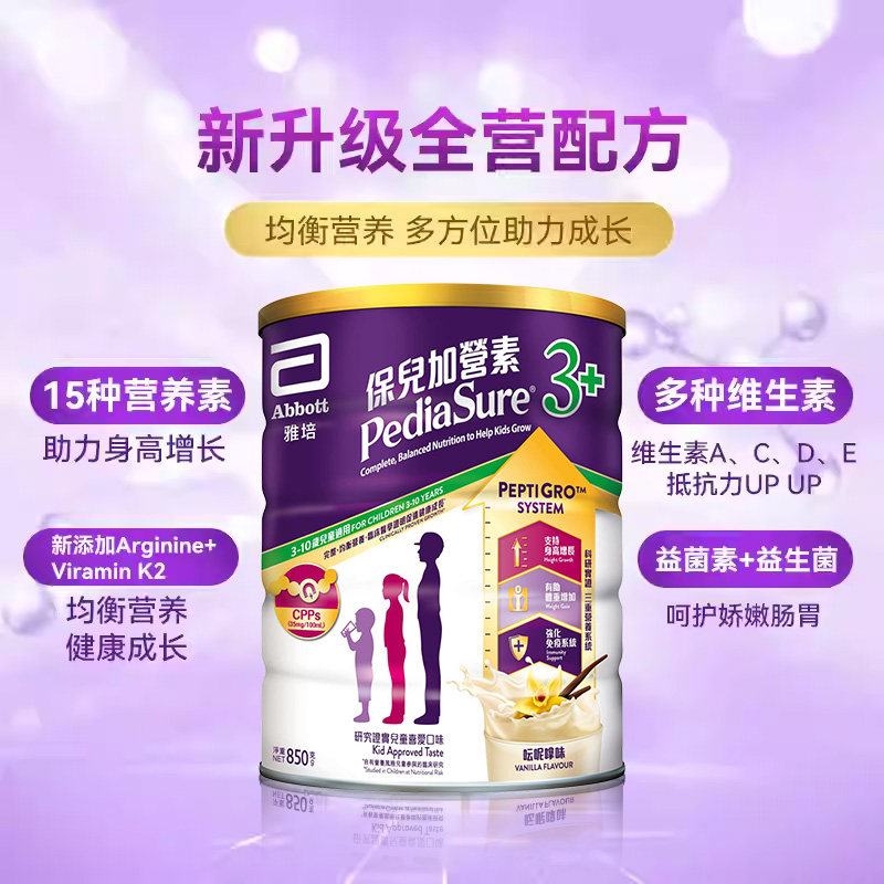 万宁雅培港版保儿加营素儿童成长助长营养奶粉均衡吸收小安素850g