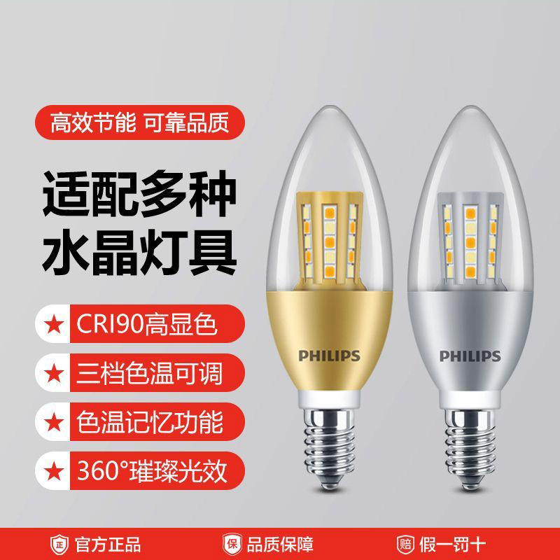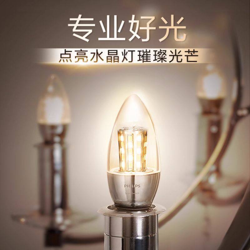 飞利浦led灯泡蜡烛灯e14螺口节能水晶吊灯调光尖泡拉尾泡家用超亮
