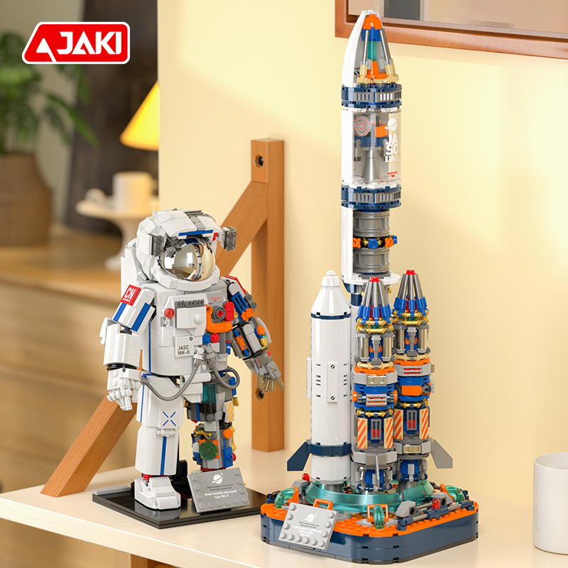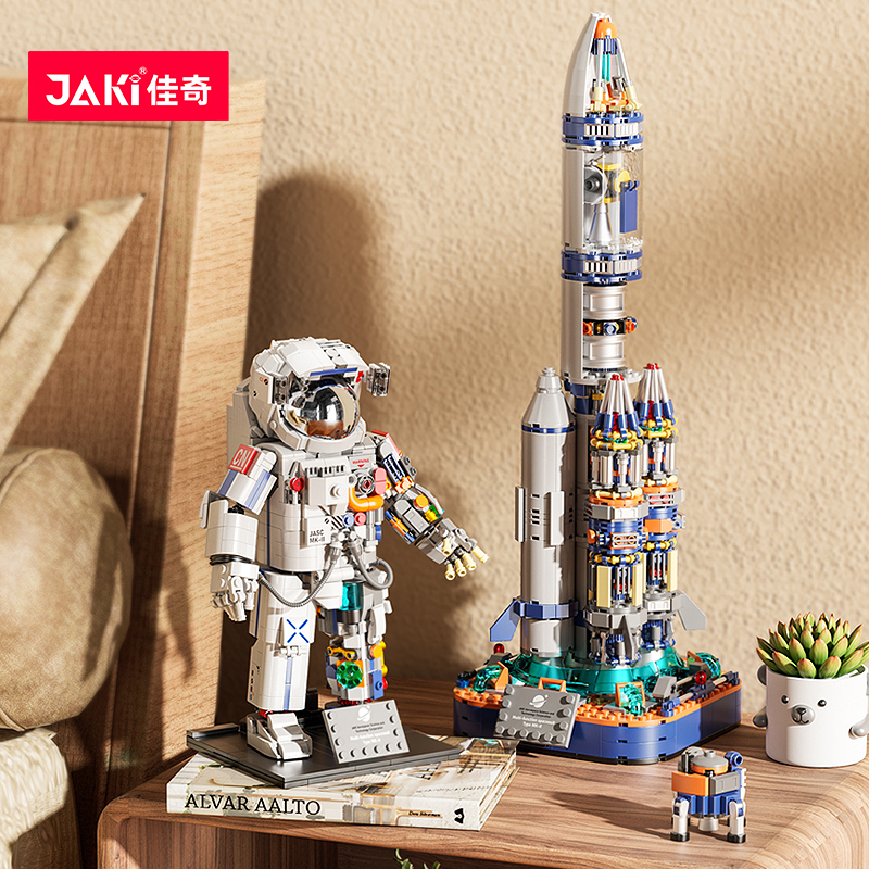 JAKI佳奇积木破晓宇航员火箭地球仪国产男孩生日礼物儿童拼装玩具