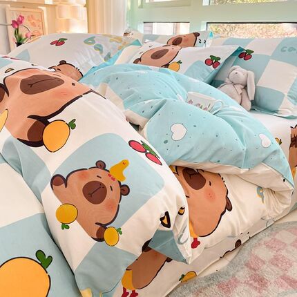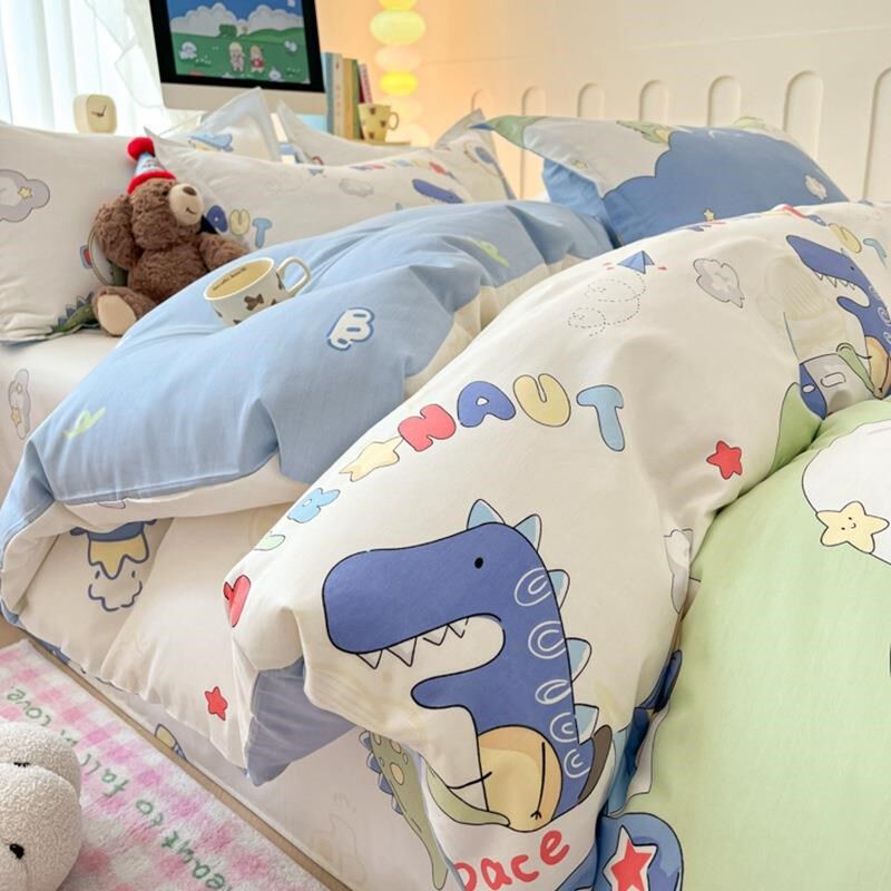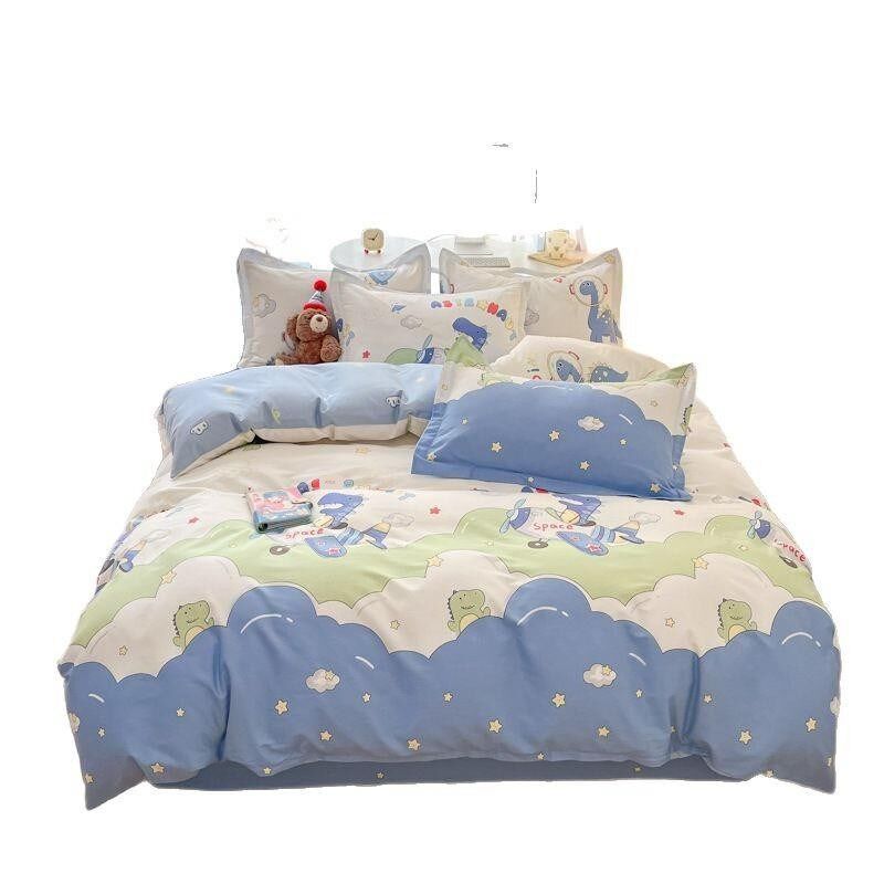 新款100全棉床单四件套儿w童卡通单件被套单双人裸睡单品被罩