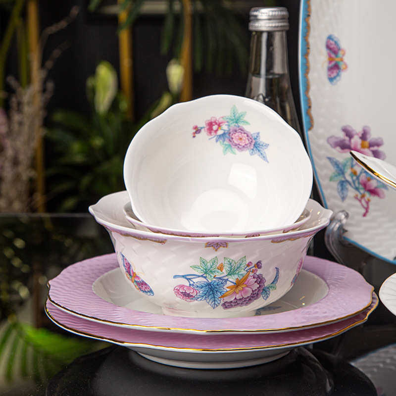 2024新款法式餐具套装骨瓷粉色轻奢高级感景德镇碗碟家用送礼瓷器