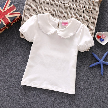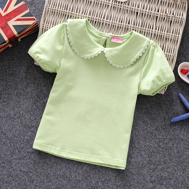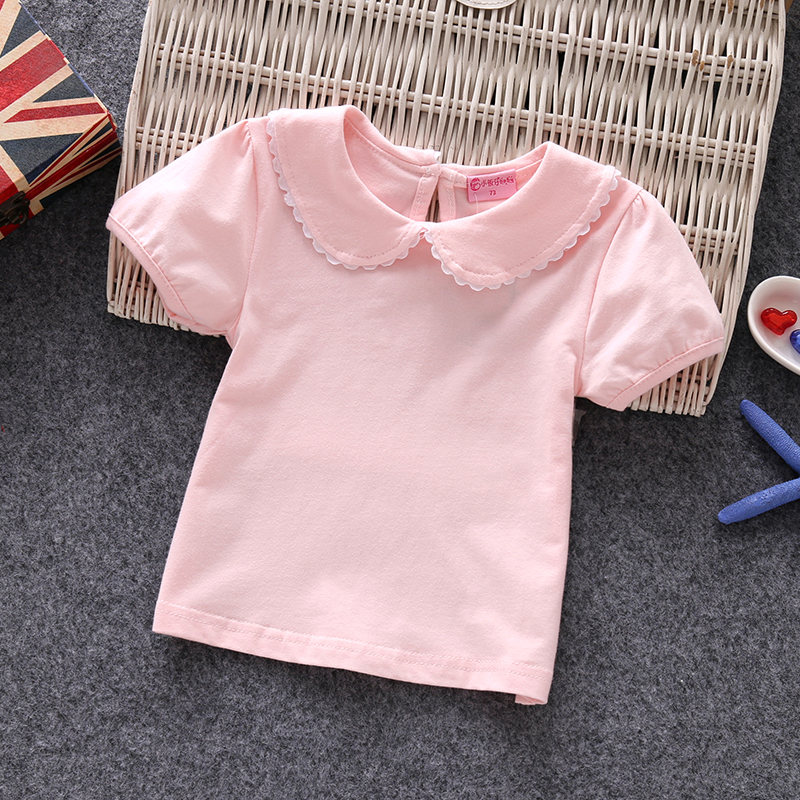 儿童夏季短袖女童T恤棉女宝宝纯色打底衫百搭上衣翻领圆领1-8岁