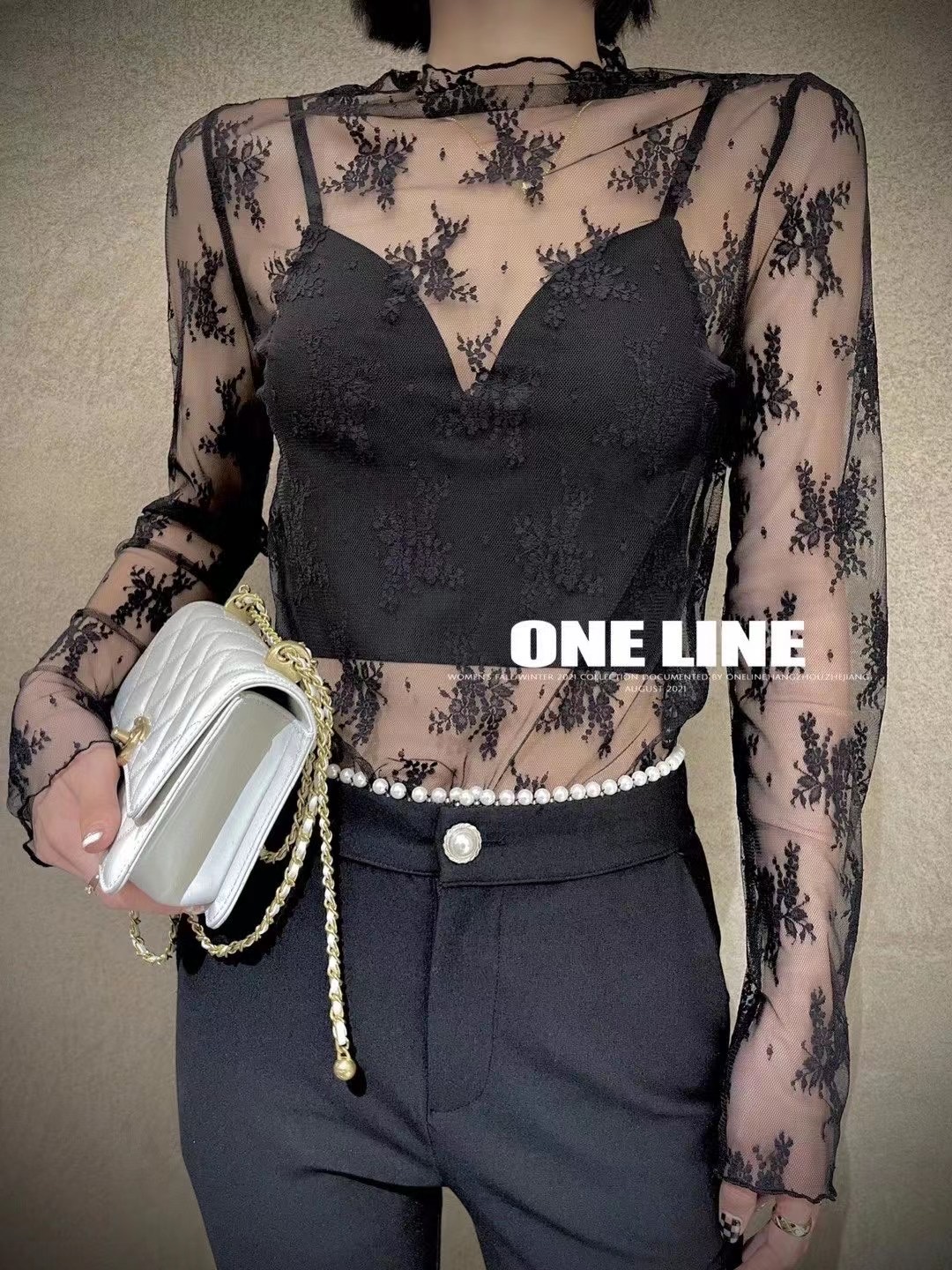 舒适不扎人欧洲站欧货2025秋新款蕾丝打底衫长袖内搭t恤气质显瘦