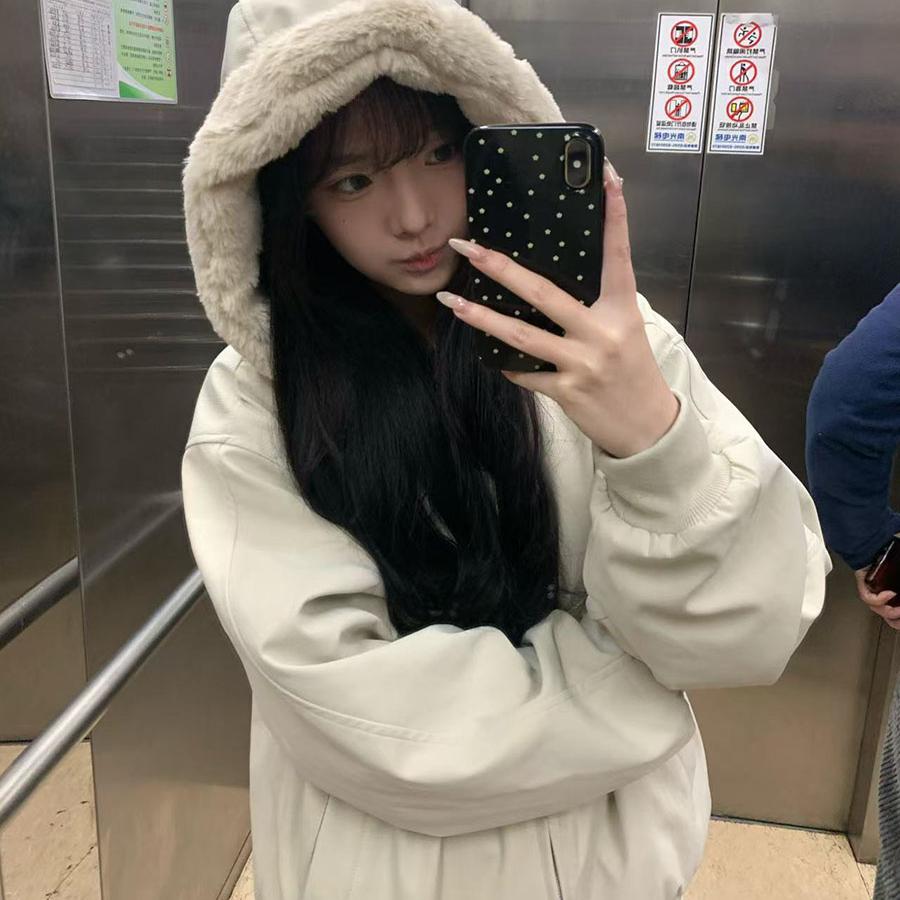 国潮座山雕棉服女冬季2025新款美式高街加绒加厚连帽刺绣棉衣外套