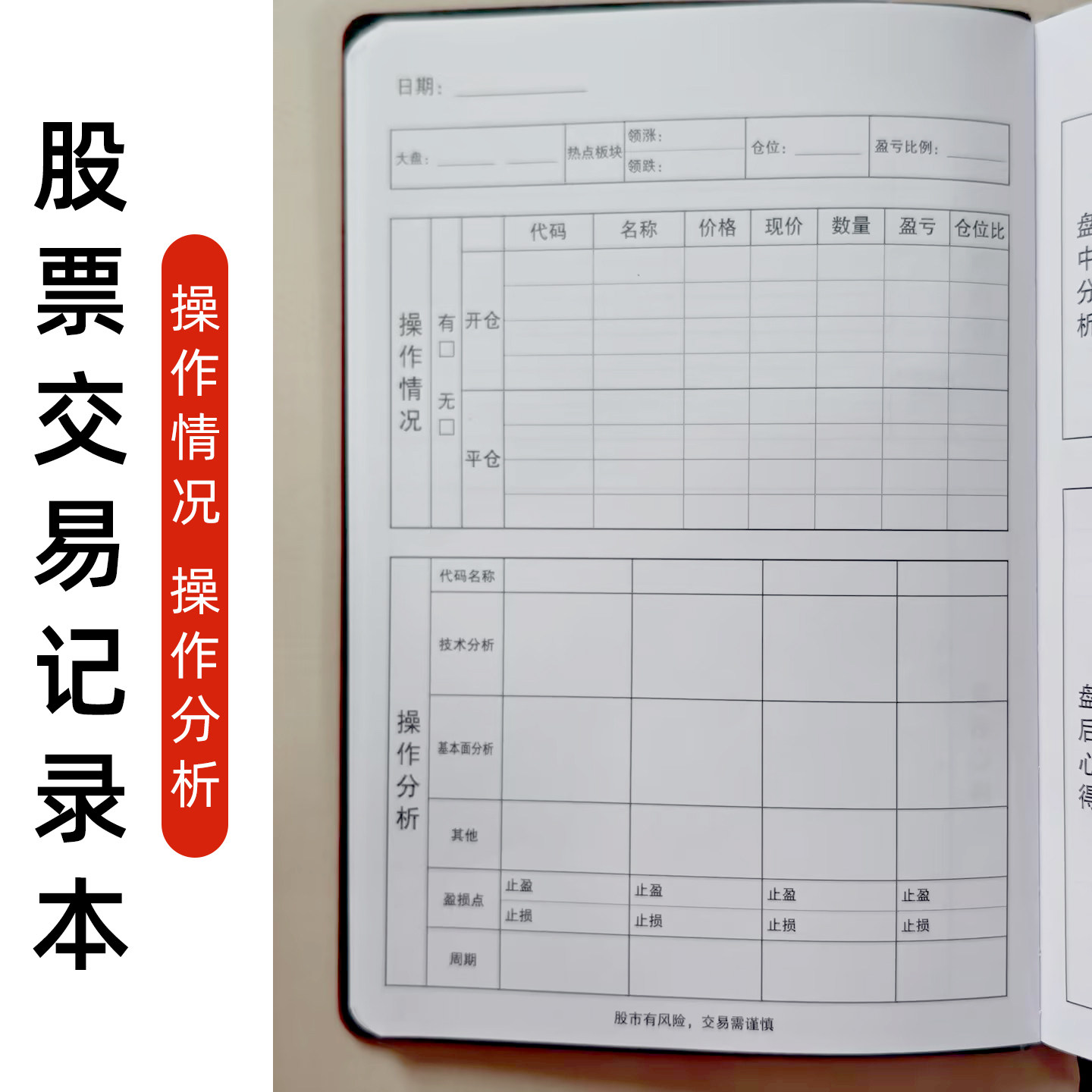 股票交易记录A5系统持股笔记本子港股美股基金ETF涨跌登记簿股市大盘指数市场行情分析本每日炒股日记表定制