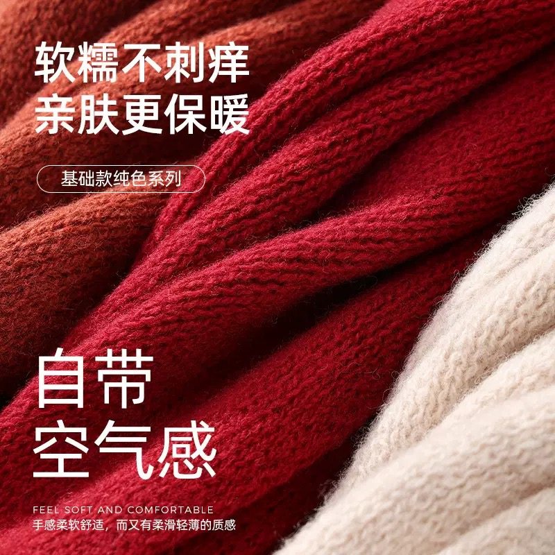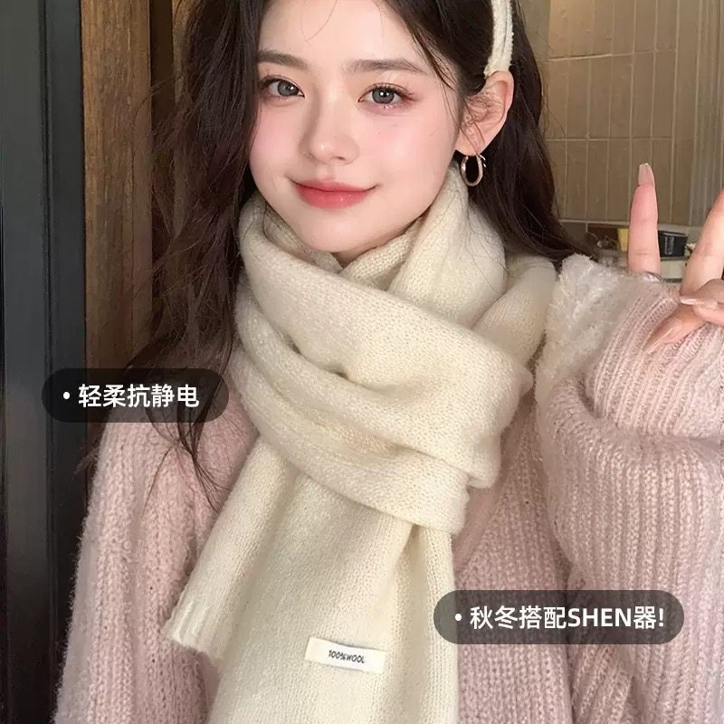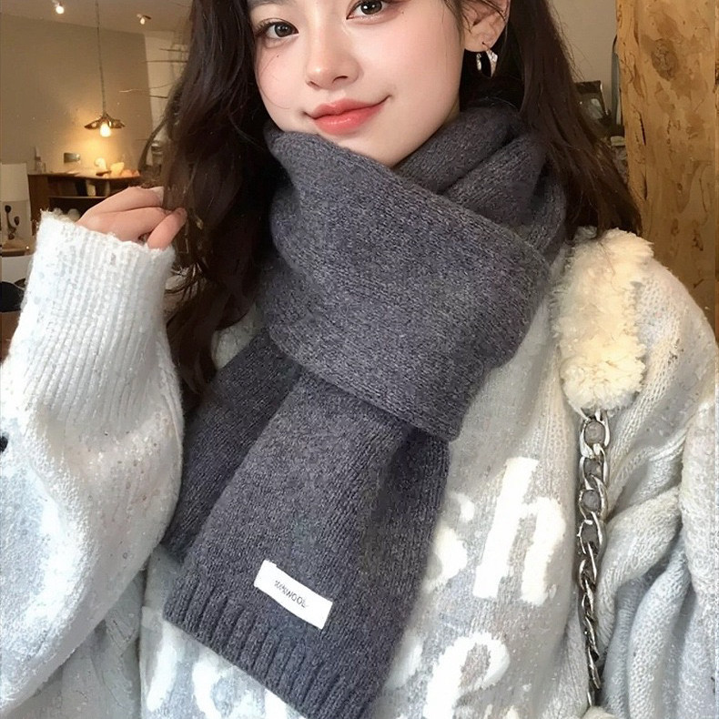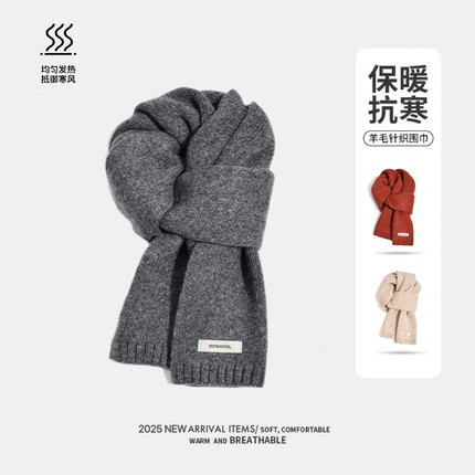 冬季保暖羊毛针织围巾女士简约毛线长款围巾防寒围脖男女情侣可用