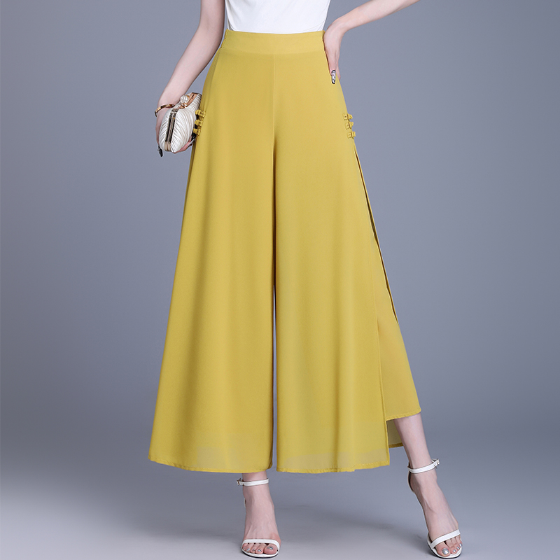 双层雪纺阔腿裤女夏季2025年薄款宽松垂感开叉中国风裙裤九分白色