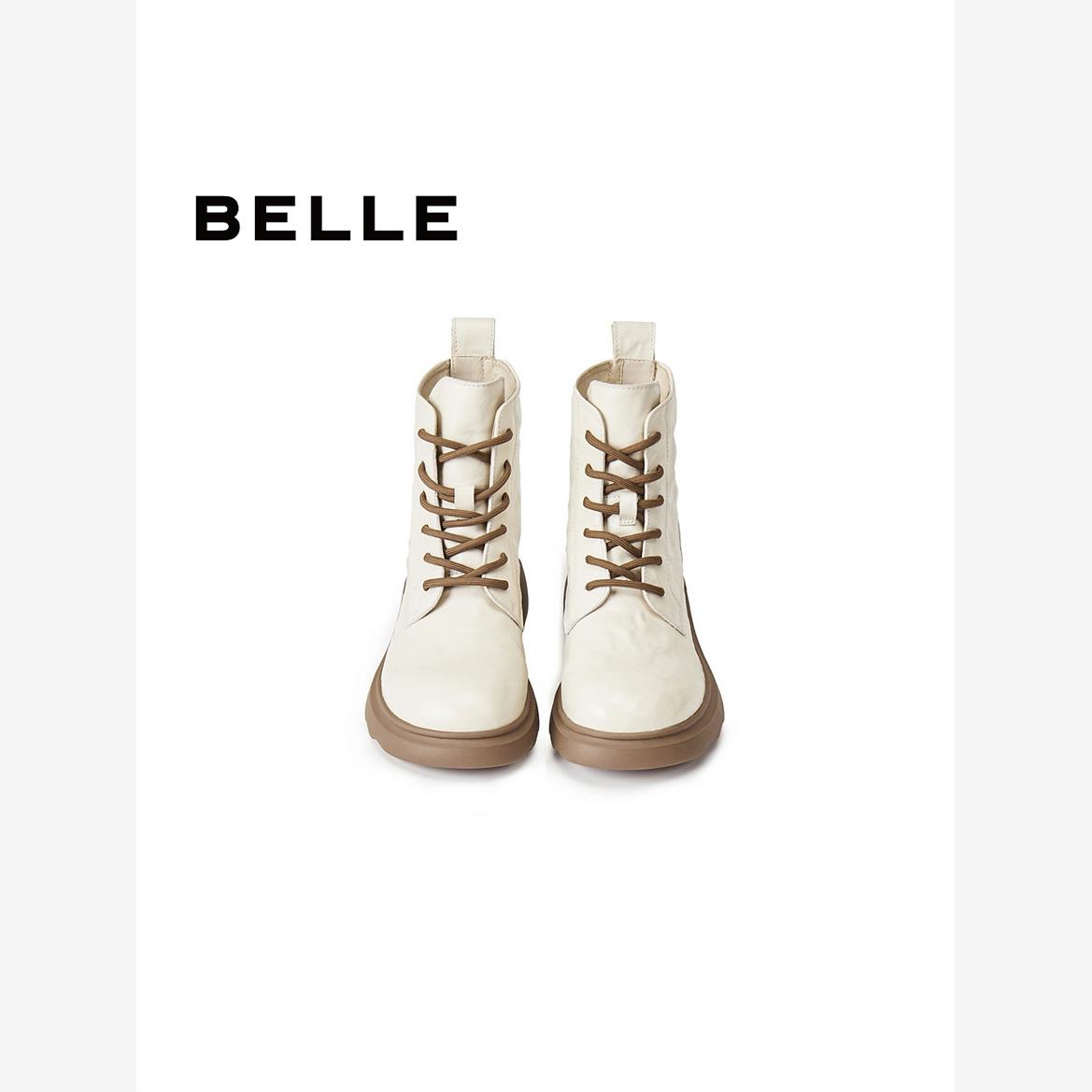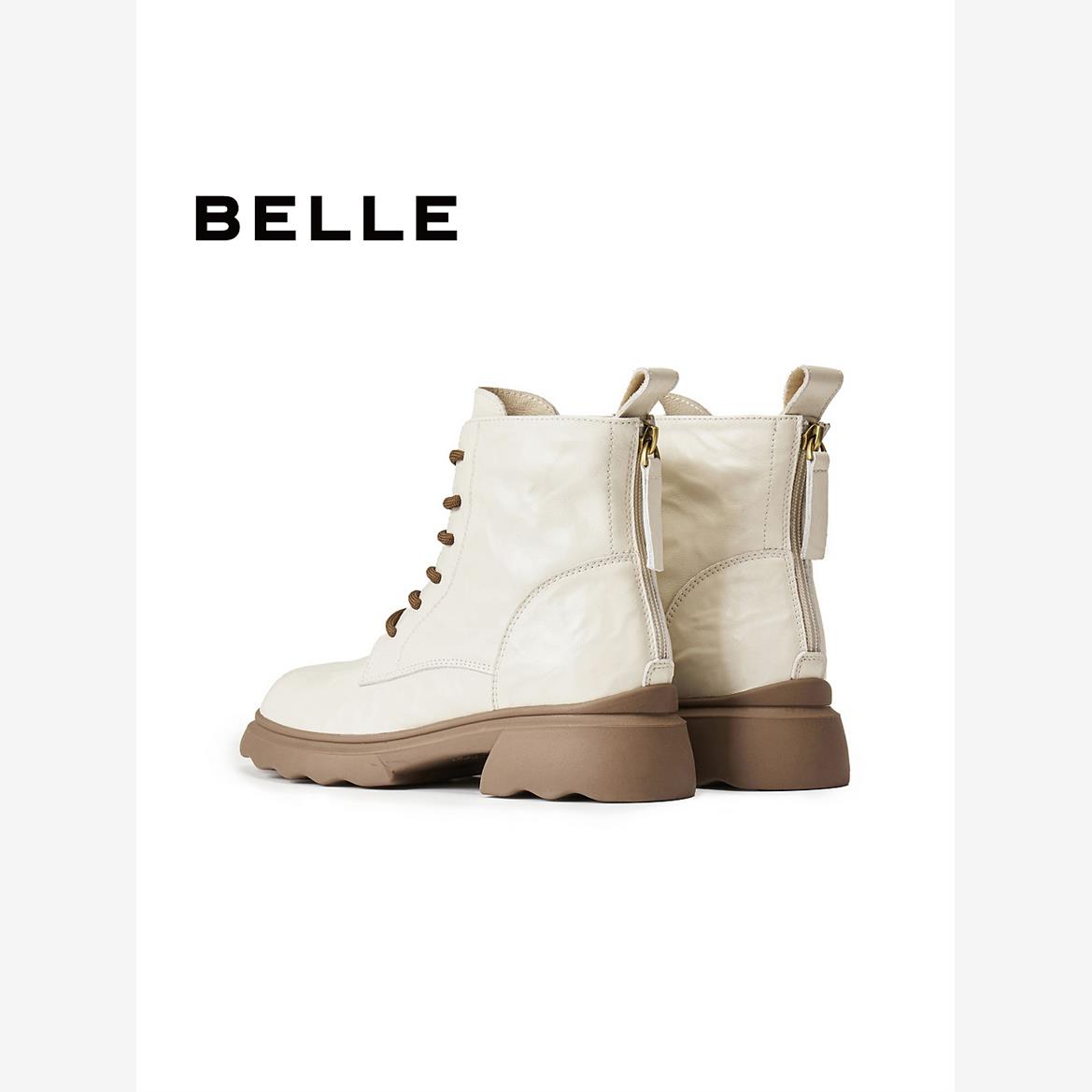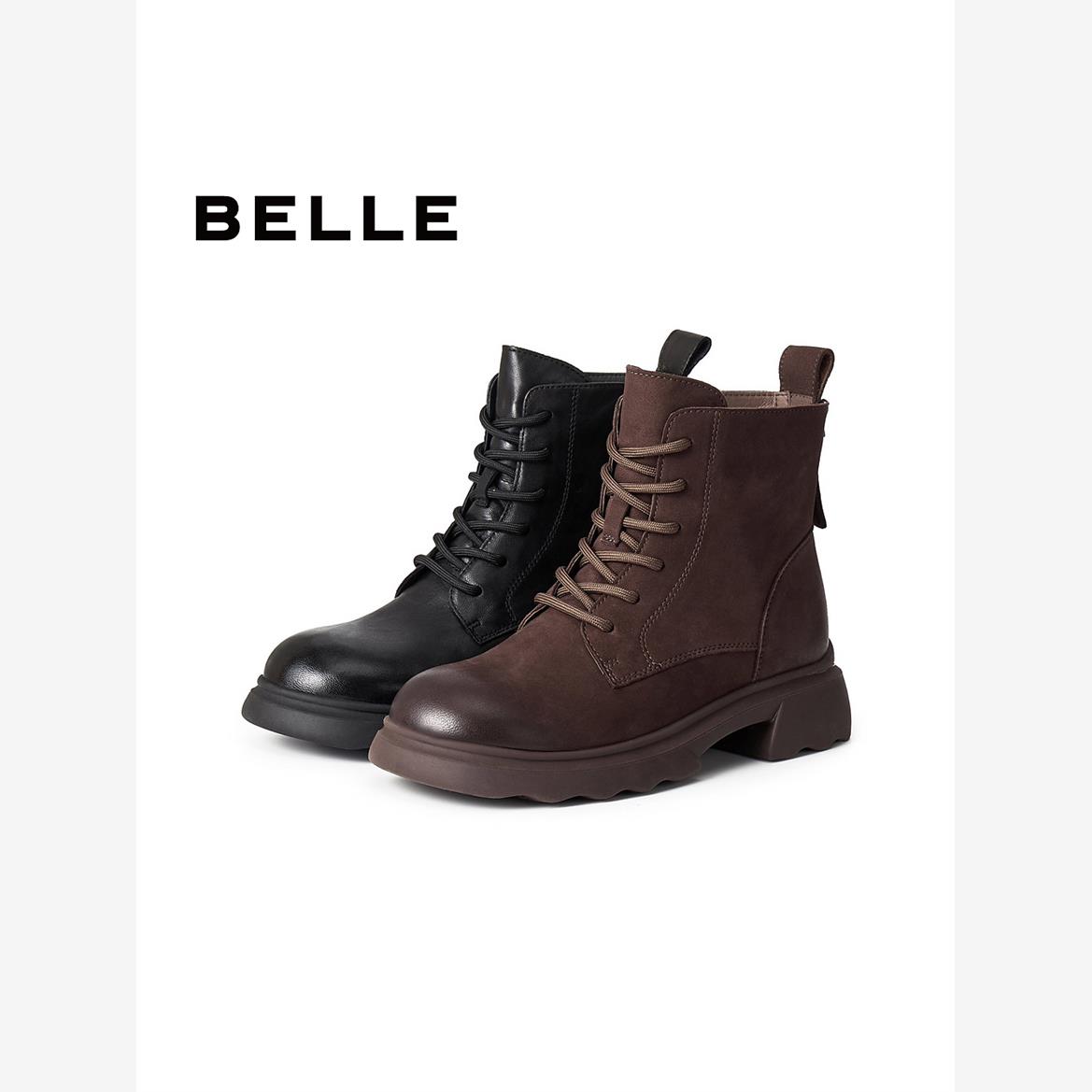 百丽2025冬季新款加绒靴子覆古马丁靴女款真皮显瘦休闲短靴E5S2D