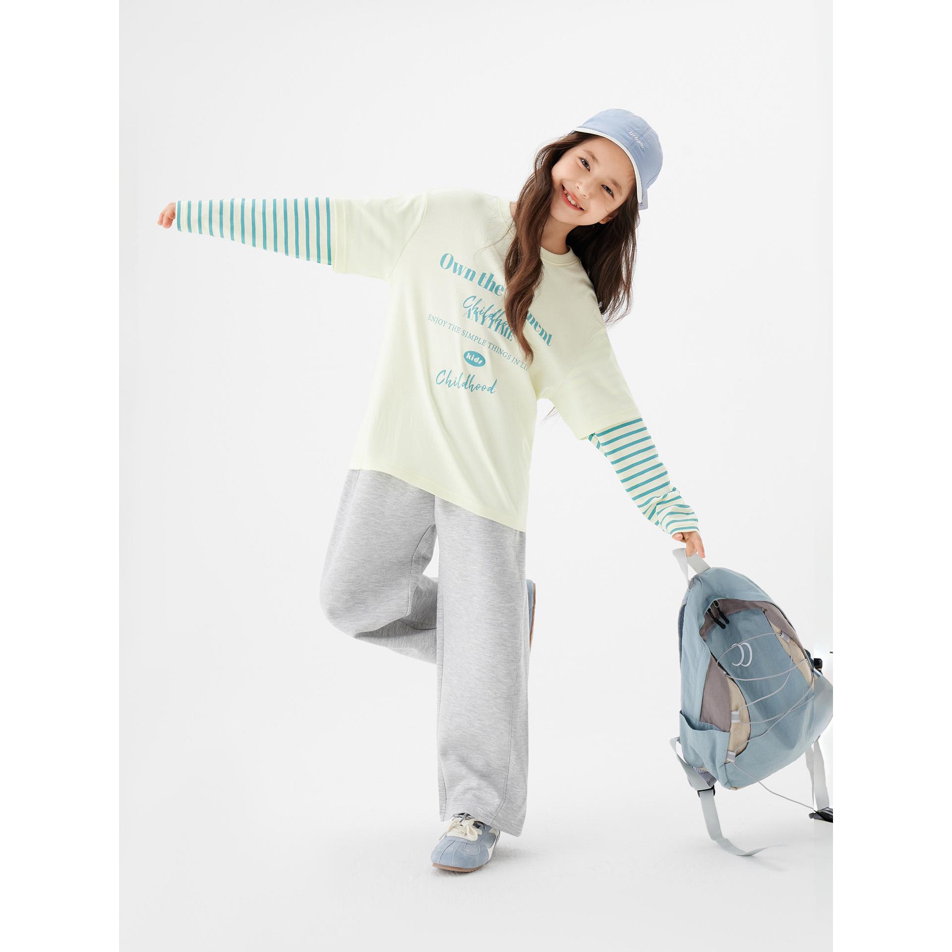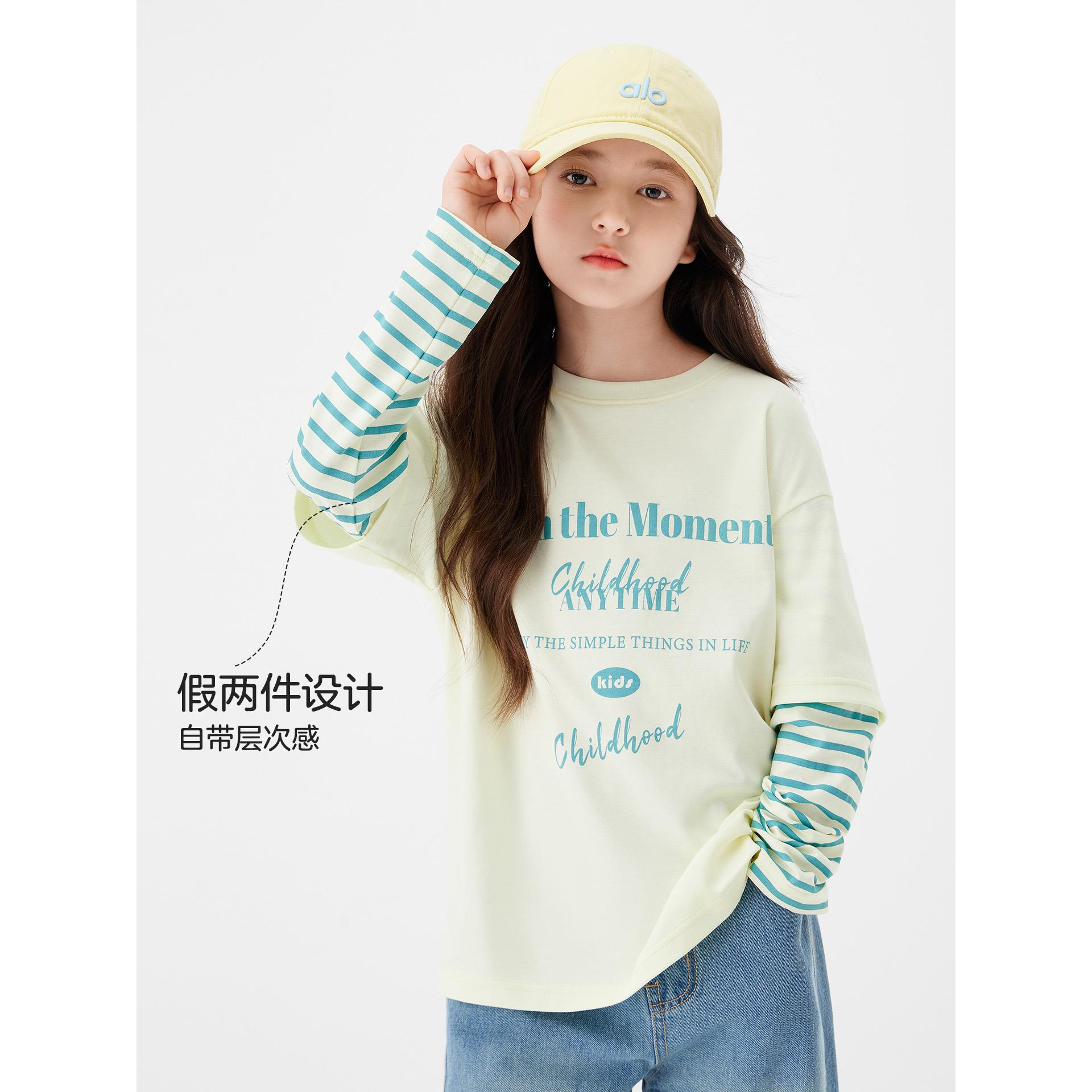 左西童装女童长袖T恤假两件儿童纯棉秋装2025新款女孩大童打底衫