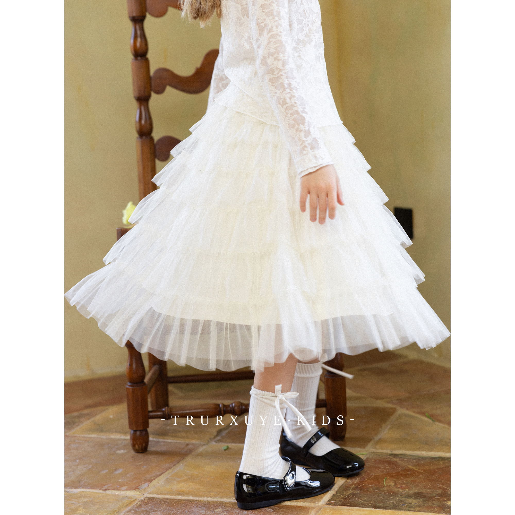 初煦女童网纱蛋糕裙2025秋季儿童甜美百搭半身裙童装蓬蓬公主裙女