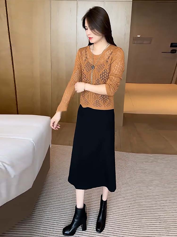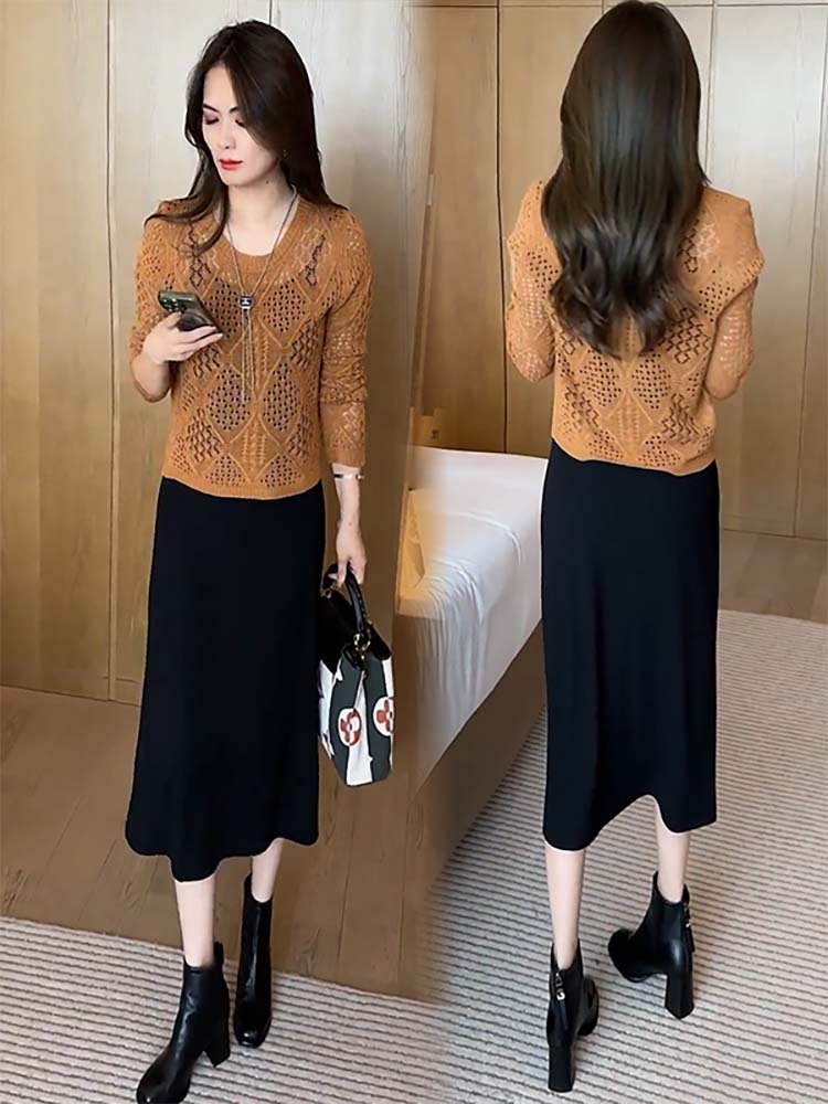 时尚连衣裙套装女2025春秋新款气质减龄长袖针织衫吊带裙两件套潮