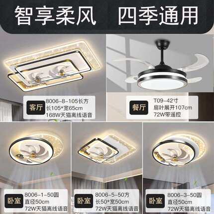 吸顶灯风扇灯带扇页摇头家用客厅灯静音智能中山家装灯饰灯具成套