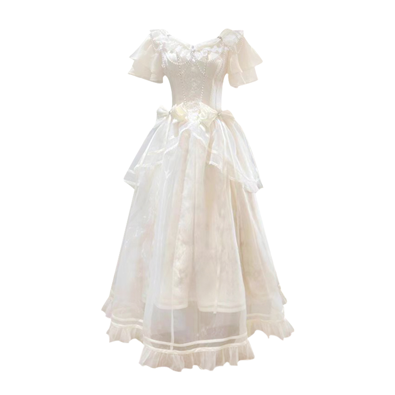 昭和白月光 夏装新款日系软妹lolita设计气质甜美短袖收腰连衣裙