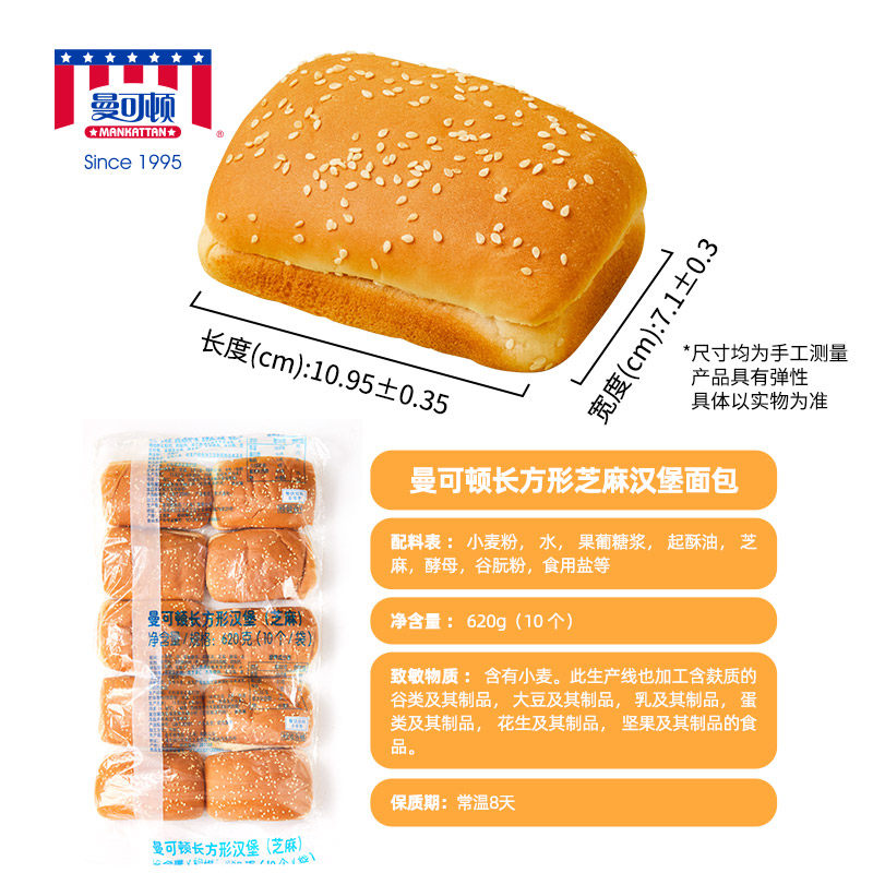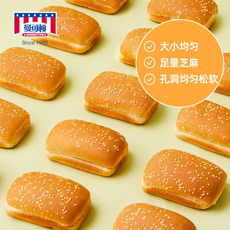 曼可顿汉堡胚汉堡包面包胚620g商用家庭装早餐半成品长方形汉堡胚