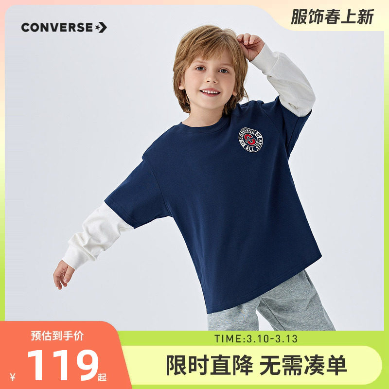 匡威童装儿童长袖上衣假两件2026春季新品男童潮T恤内搭纯棉春装
