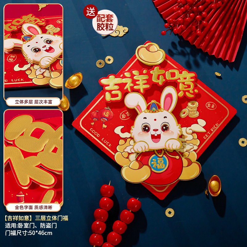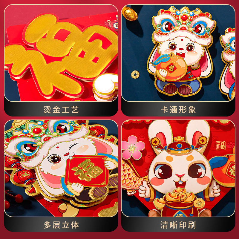 极速2023兔年卡通立体春联大门春节过年装饰布置用品门.贴新年家