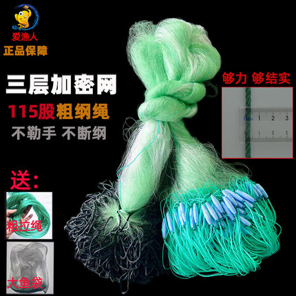 三层鱼网粘网加强丝加重坠防缠网包绳坠捕鱼抓鱼网工具河道水库网