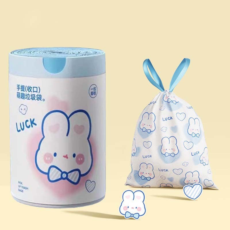 速发可爱高颜值蓝心兔家用厨房自动收口手提加厚抽绳式大号垃圾袋