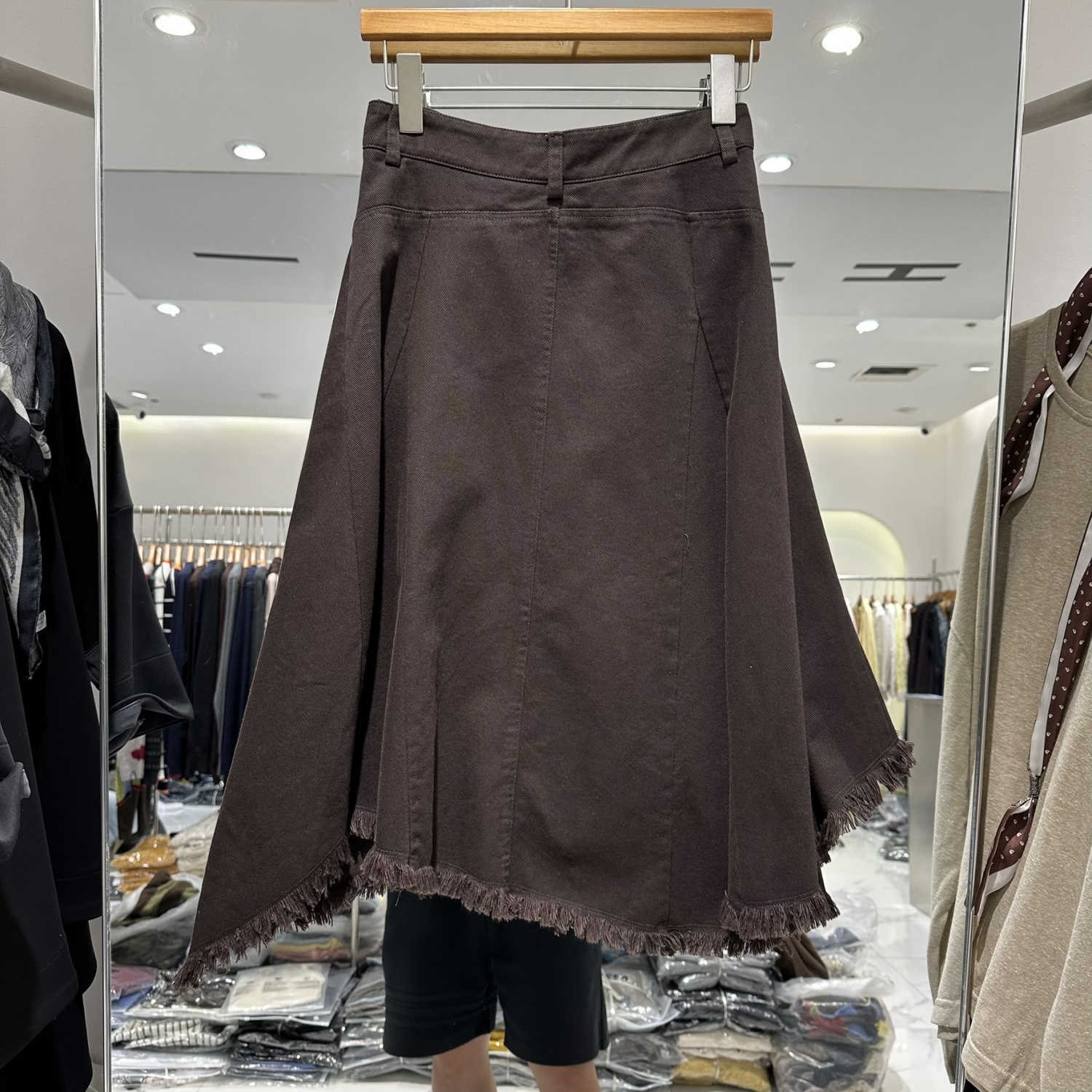 79699欧洲站2025秋时尚高腰显瘦毛边牛仔半身裙女中长款包臀伞裙