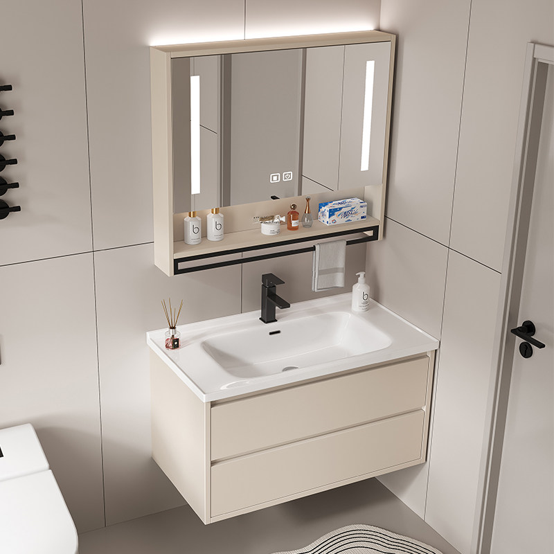 实木浴室柜陶瓷一体盆卫生间智能洗手池洗脸盆柜组合挂墙式洗漱台