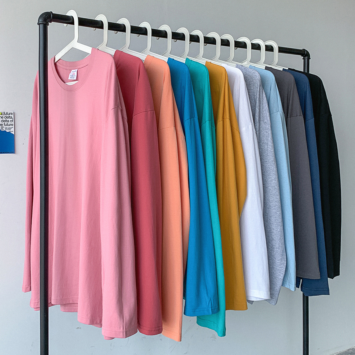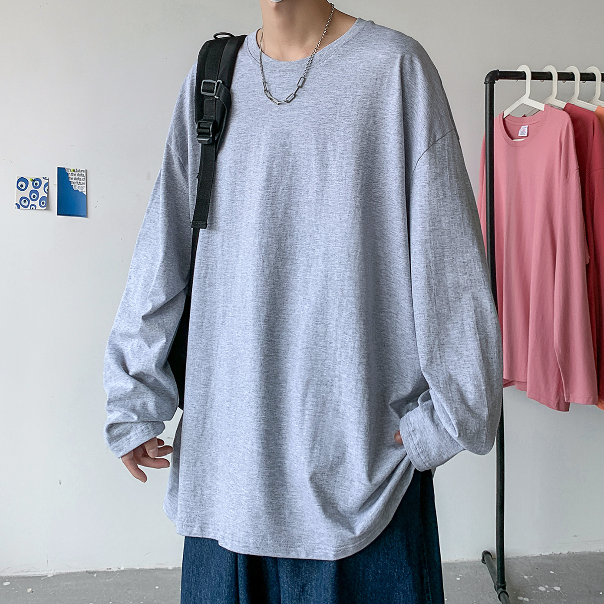 糖果色长袖T恤男加肥大码潮胖子宽松体纯棉衣服春秋季装百搭打底