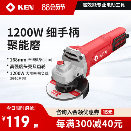 KEN/锐奇1200W聚能角磨机9910旗舰店细手柄打磨光切割抛光机9810
