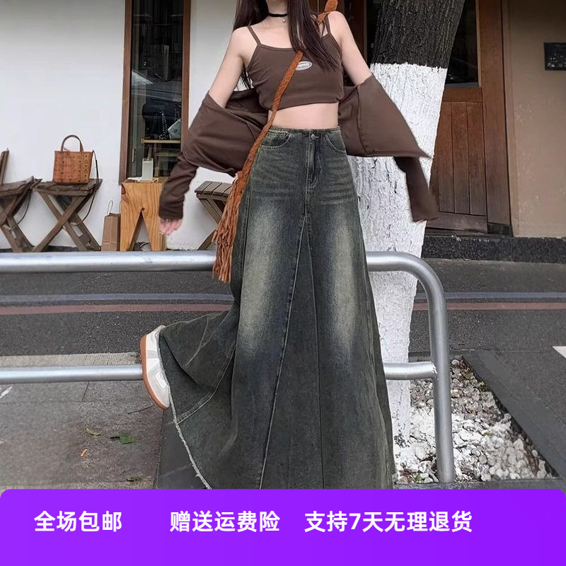 显瘦大摆裙新款鱼尾a包臀牛仔秋季高腰半身裙复古中长款美式女字