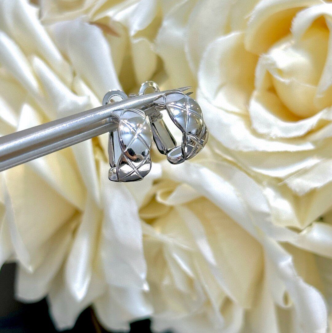 coco crush菱格耳环通体925纯银光面小巧精致耳扣小香风明星同款