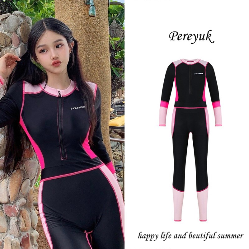 日系少女甜美水母衣连体长袖长裤游泳衣保守冲浪潜水服训练泳装