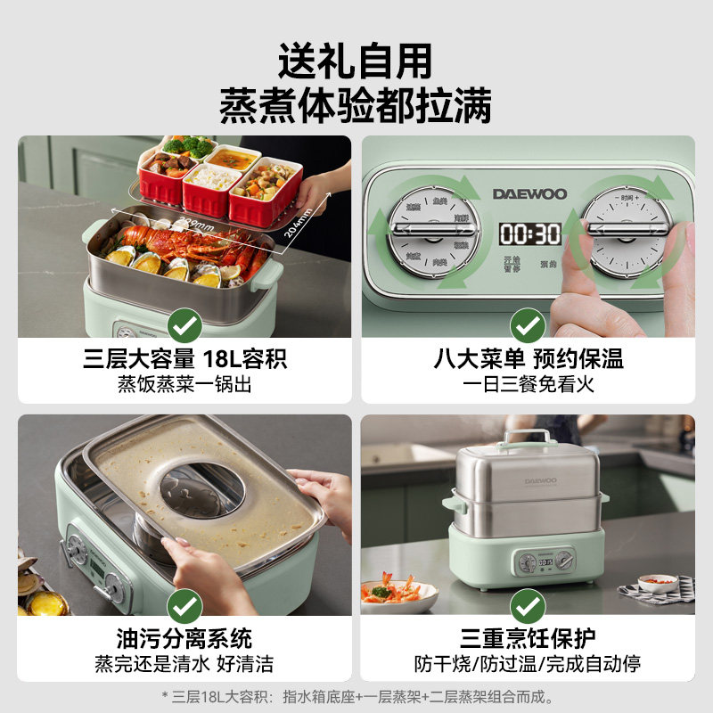 大宇全钢电蒸锅多功能家用蒸煮炖一体锅多层大容量三层旗舰店新款
