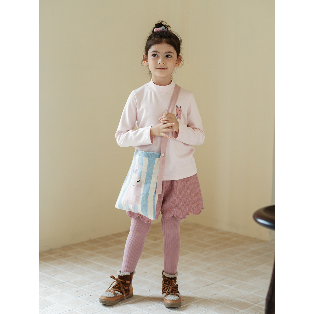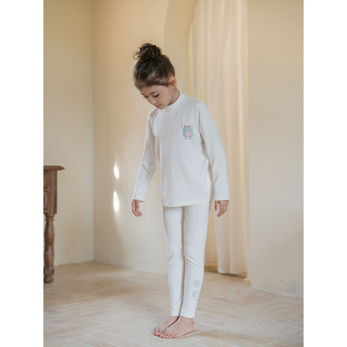 欧利娜利 华绒纤维桑蚕丝混纺小怪兽印图半高领冬季打底绒绒衫/裤