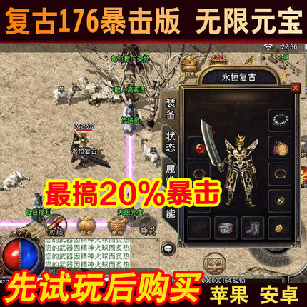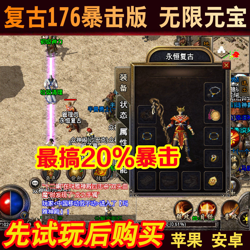 新开区 暴击176版传奇手游无限元宝安卓苹果手机非单机版gm后台