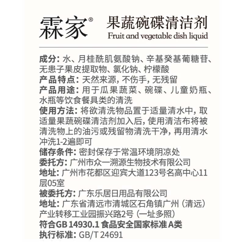 霖家家用洗洁精天然食品级a类