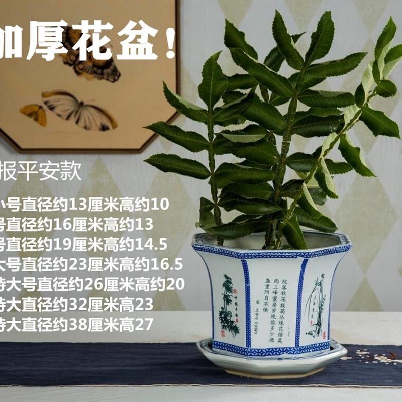 特大号陶瓷花盆青花陶瓷盆八角花盆带陶瓷托盘多肉植物盆大尺码盆