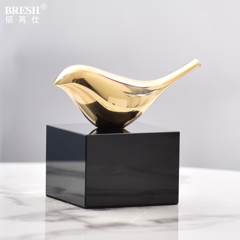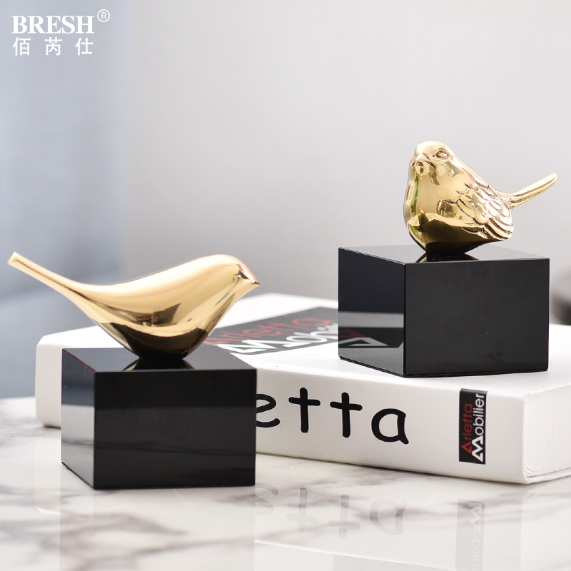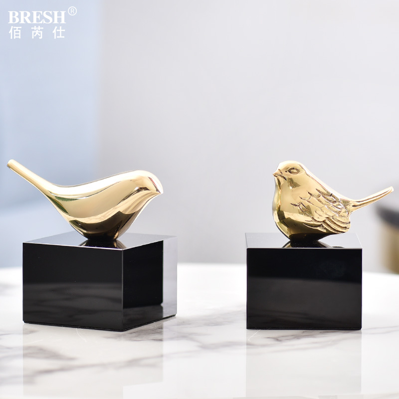 现代简约轻奢全铜小鸟摆件创意家居样板房客厅书房书柜摆设H1008